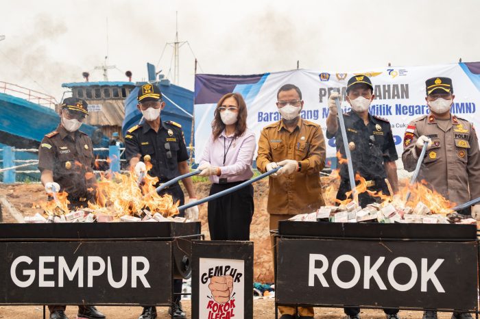 Dari sisi Bea Cukai Tanjung Balai Karimun, barang yang turut dimusnahkan meliputi 2.303.708 batang rokok ilegal, 2.745,8 liter MMEA ilegal, dan 291 kaleng minuman beralkohol ilegal.