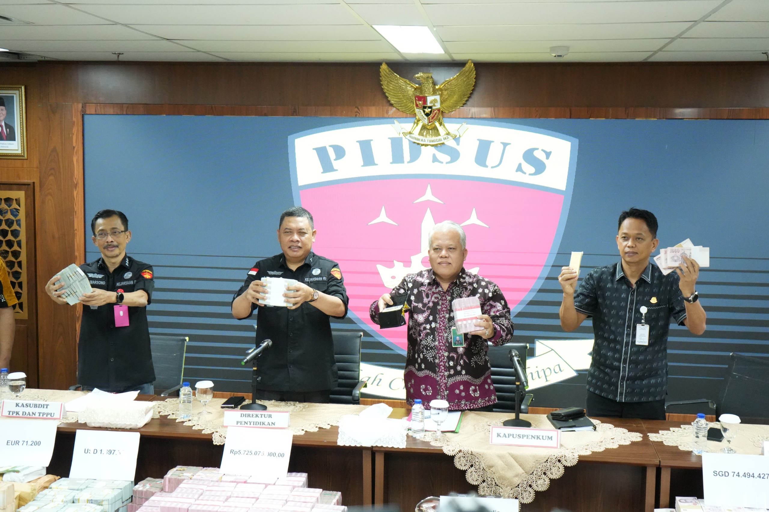Selain uang, penyidik juga menemukan, logam mulia jenis emas Fine Gold 999.9 kepingan 100 gram sebanyak 449 buah, logam mulia emas Antam kepingan 100 gram sebanyak 20 buah dan tiga lembar certificate diamond NPNEN ISO/IEC17025 serta tiga lembar kwitansi toko emas mulia.