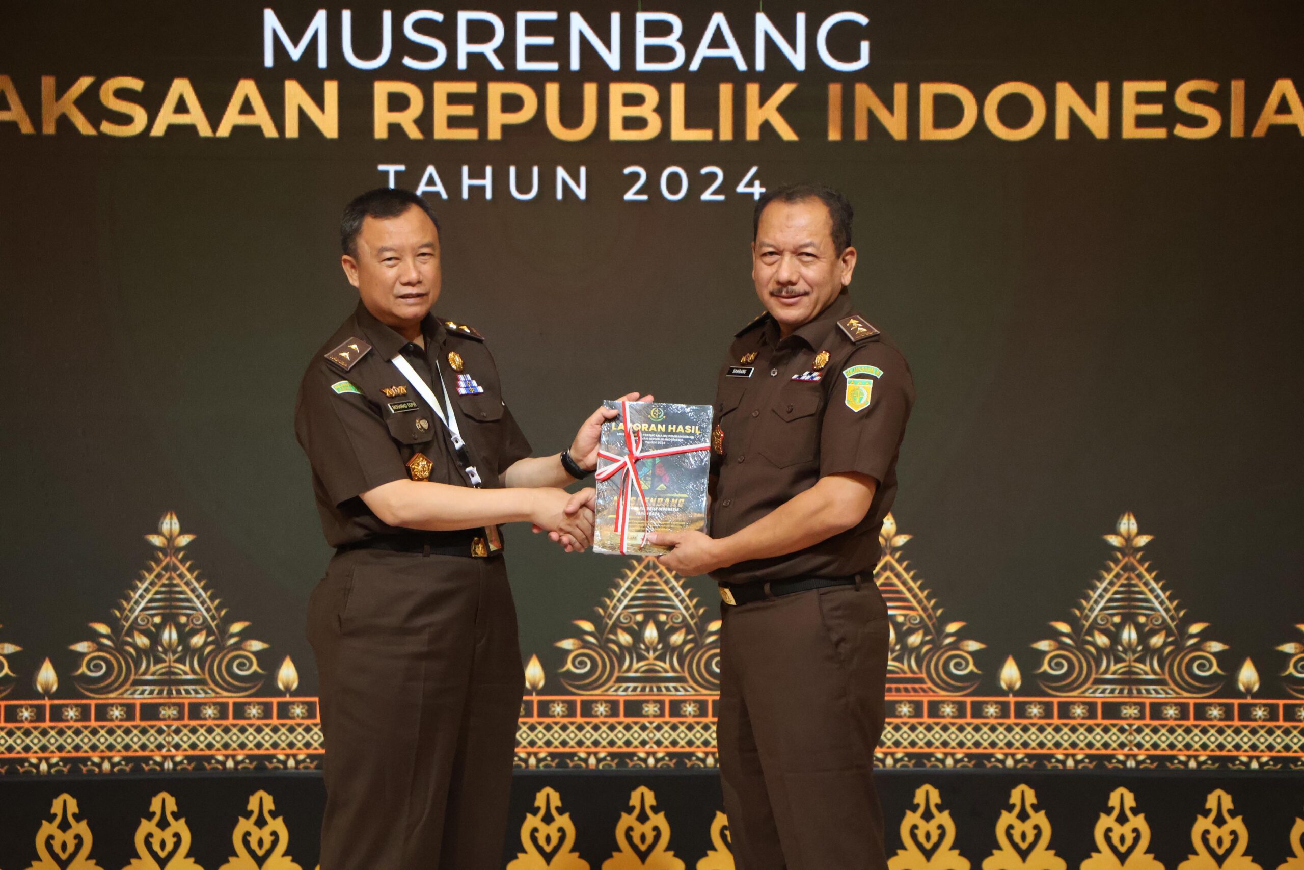 HukumID.co.id, Jakarta – Jaksa Agung Muda Pembinaan (JAM-Pembinaan), Bambang Sugeng Rukmono memberikan penghargaan kepada satuan kerja (satker) yang memperoleh Nilai Kerja Anggaran (NKA) Terbaik Tahun 2023. Penghargaan tersebut diberikan pada penutupan Musyawarah Perencanaan Pembangunan (Musrenbang) Kejaksaan RI Tahun 2024 di Ayodya Resort, Nusa Dua, Bali.