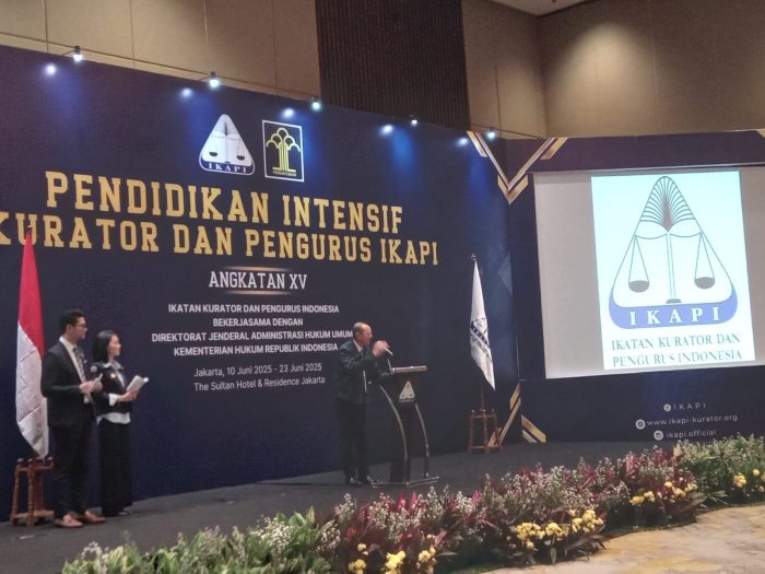 HukumID.co.id, Jakarta – Ikatan Kurator dan Pengurus Indonesia (IKAPI) kembali menyelenggarakan Pendidikan Intensif Kurator dan Pengurus angkatan ke-XV di The Sultan Hotel & Residence, Jakarta. Kegiatan ini digelar bekerja sama dengan Direktorat Jenderal Administrasi Hukum Umum (Dirjen AHU) Kementerian Hukum Republik Indonesia.