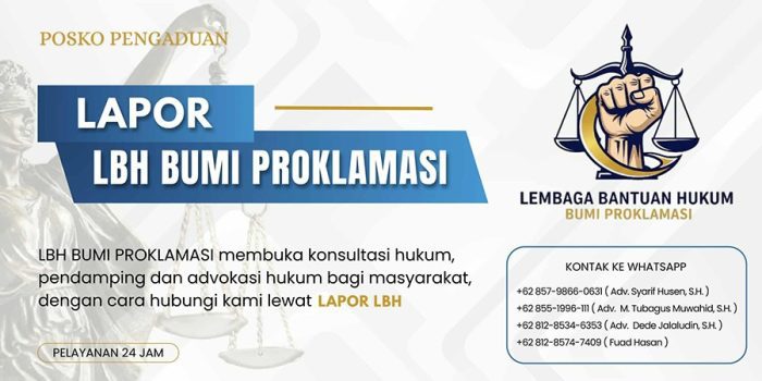 HukumID | Karawang – Di tengah hiruk-pikuk kawasan industri Karawang yang dikenal sebagai “kota pabrik”, lahirlah sebuah lembaga bantuan hukum dari rahim pergerakan rakyat. LBH BUMI PROKLAMASI bukan sekadar kantor hukum biasa, melainkan organ taktis yang memadukan semangat aktivisme dengan keahlian litigasi. Lembaga ini muncul dari keprihatinan mendalam terhadap ketidakadilan yang menimpa masyarakat kecil.