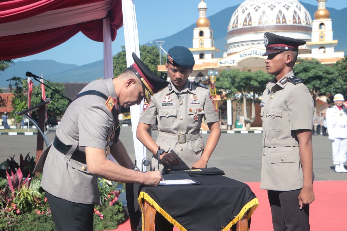 Ia berpesan, amanah ini harus selalu diingat, djunjung tinggi dan laksanakan dengan sepenuh hati, penuh kebanggaan, kehormatan, dan niatkan untuk selalu berbuat yang terbaik. Ucapan selamat juga disampaikan kepada orang tua atas keberhasilan putranya menjadi Bintara remaja Polri yang baru saja dilantik.