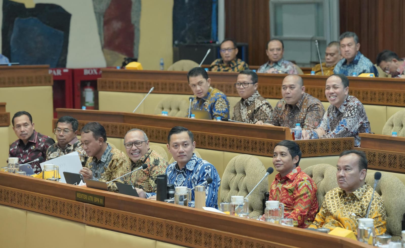 Turut hadir dalam Rapat Kerja ini, 36 Anggota Komisi II DPR RI. Turut mendampingi Menteri ATR/Kepala BPN, Wakil Menteri ATR/Wakil Kepala BPN, Raja Juli Antoni serta para Pejabat Pimpinan Tinggi Madya dan Pratama Kementerian ATR/BPN. Hadir melalui pertemuan daring, Kepala Kantor Wilayah BPN Provinsi se-Indonesia. (Acil Akhiruddin)