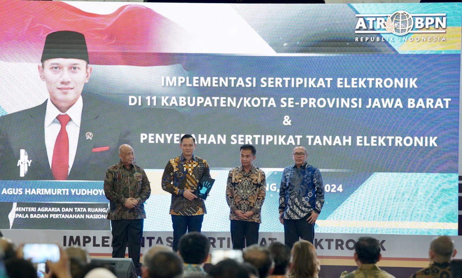 HukumID.co.id, Bandung – Usai meluncurkan Implementasi Layanan Elektronik di Bali dan Banten pada Mei lalu, Menteri Agraria dan Tata Ruang/Kepala Badan Pertanahan Nasional (ATR/BPN), Agus Harimurti Yudhoyono (AHY) kali ini meluncurkan Implementasi Layanan Elektronik di 11 Kantor Pertanahan (Kantah) Kabupaten/Kota se-Provinsi Jawa Barat secara serentak. Kegiatan ini berlangsung di Gedung Sate, Bandung pada Minggu (09/06/2024).